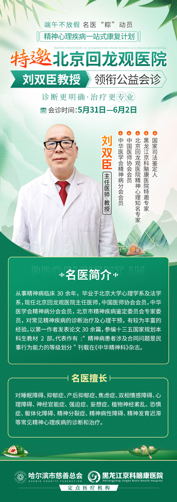 如果你也經(jīng)歷過這些煎熬,這個(gè)端午節(jié)就是改變的開始!5月31日-6月2日,北京回龍觀醫(yī)院劉雙臣教授親自帶隊(duì),連續(xù)三天不放假,專治失眠、焦慮、抑郁等心理問題。不用請假、不用奔波,家門口就能看北京專家!